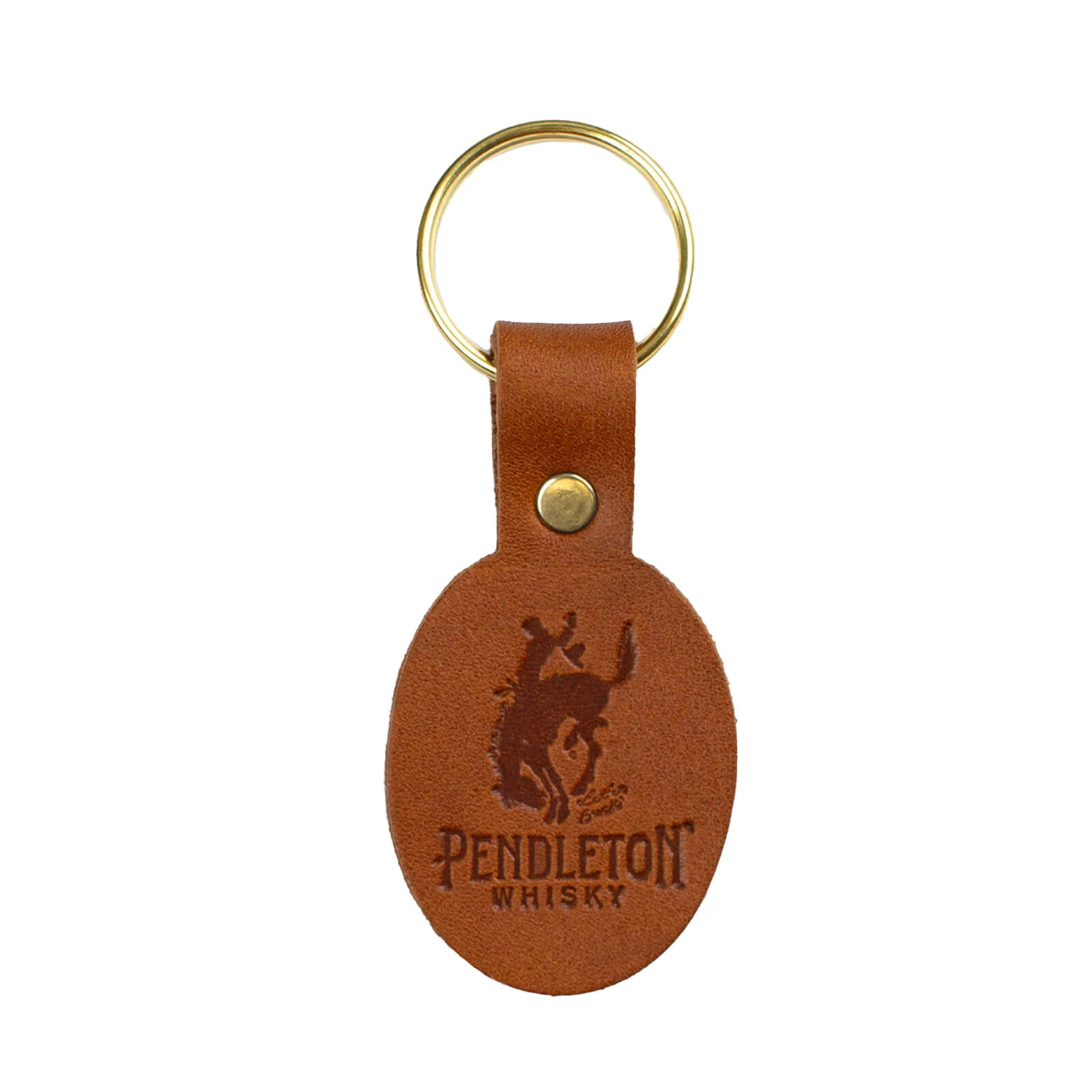 Elevate your everyday carry with our genuine leather keychain. Crafted from 100% full grain leather and featuring a classic brass split key ring and debossed Pendleton® Whisky Let'er Buck logo, this keychain adds a touch of Western style to your keys.